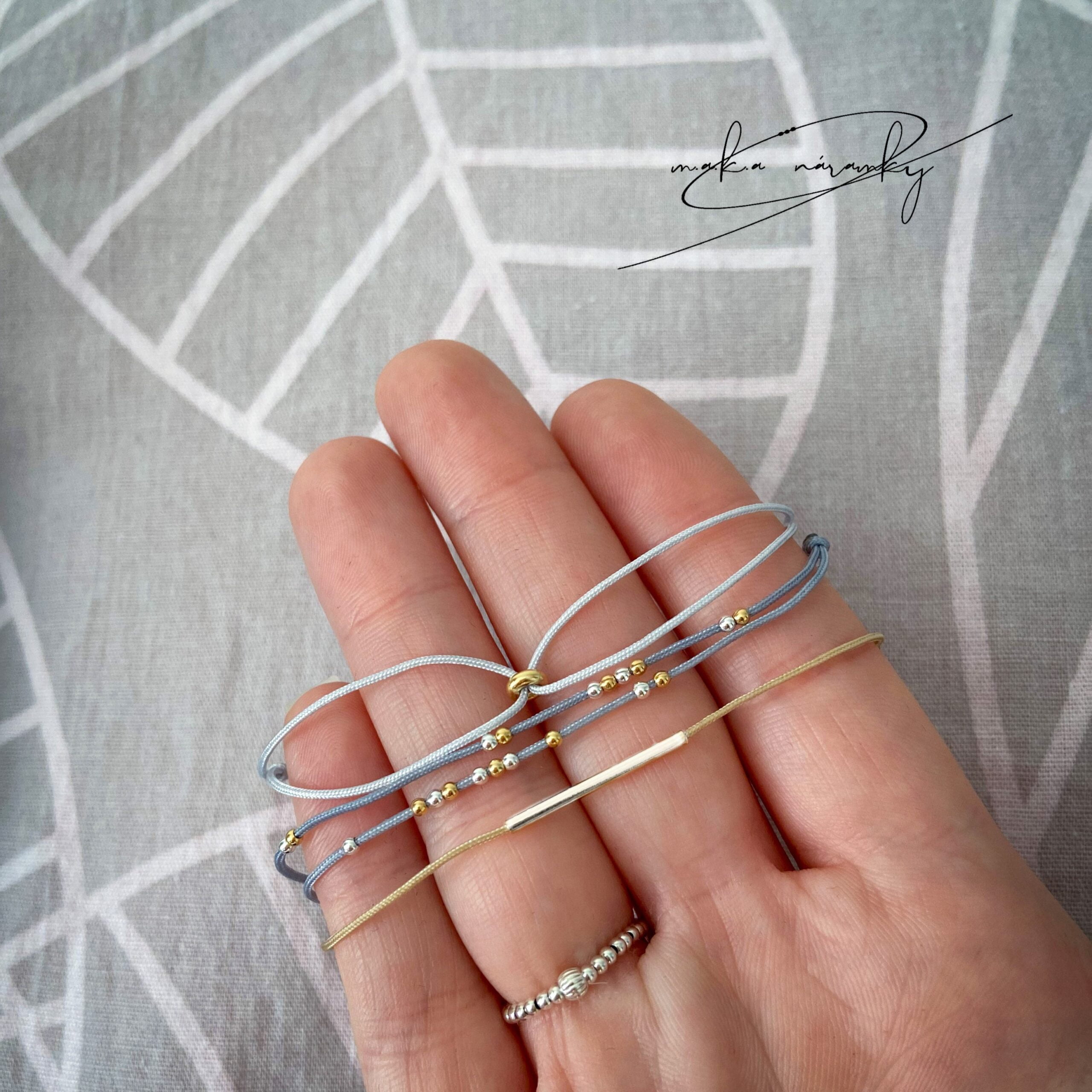 Nelamte si hlavu s velikostí, náramky na sobě mají posuvné uzlíky, které se přizpůsobí Vašemu zápěstí, takže stačí vybrat ze základního řazení:
